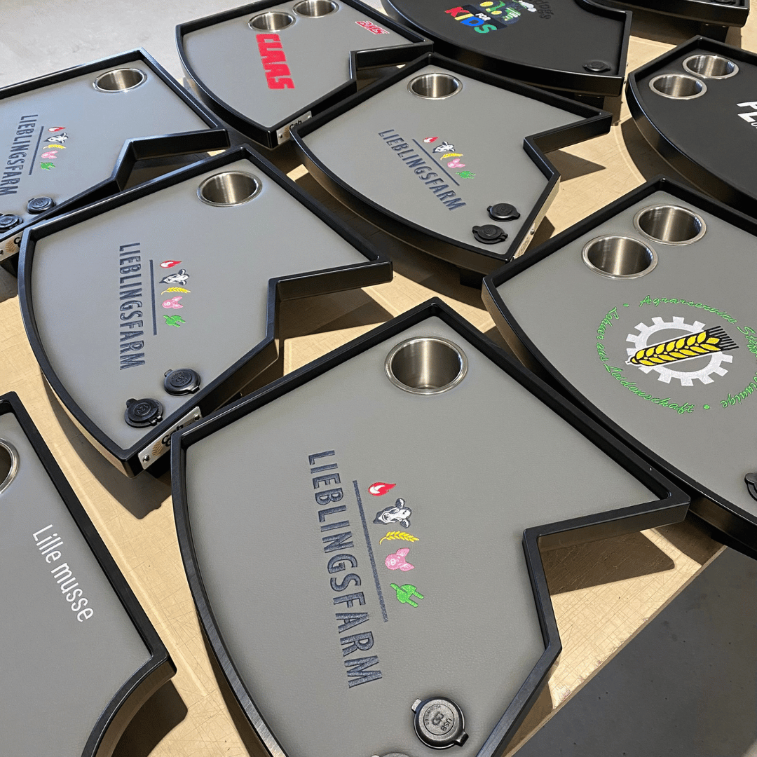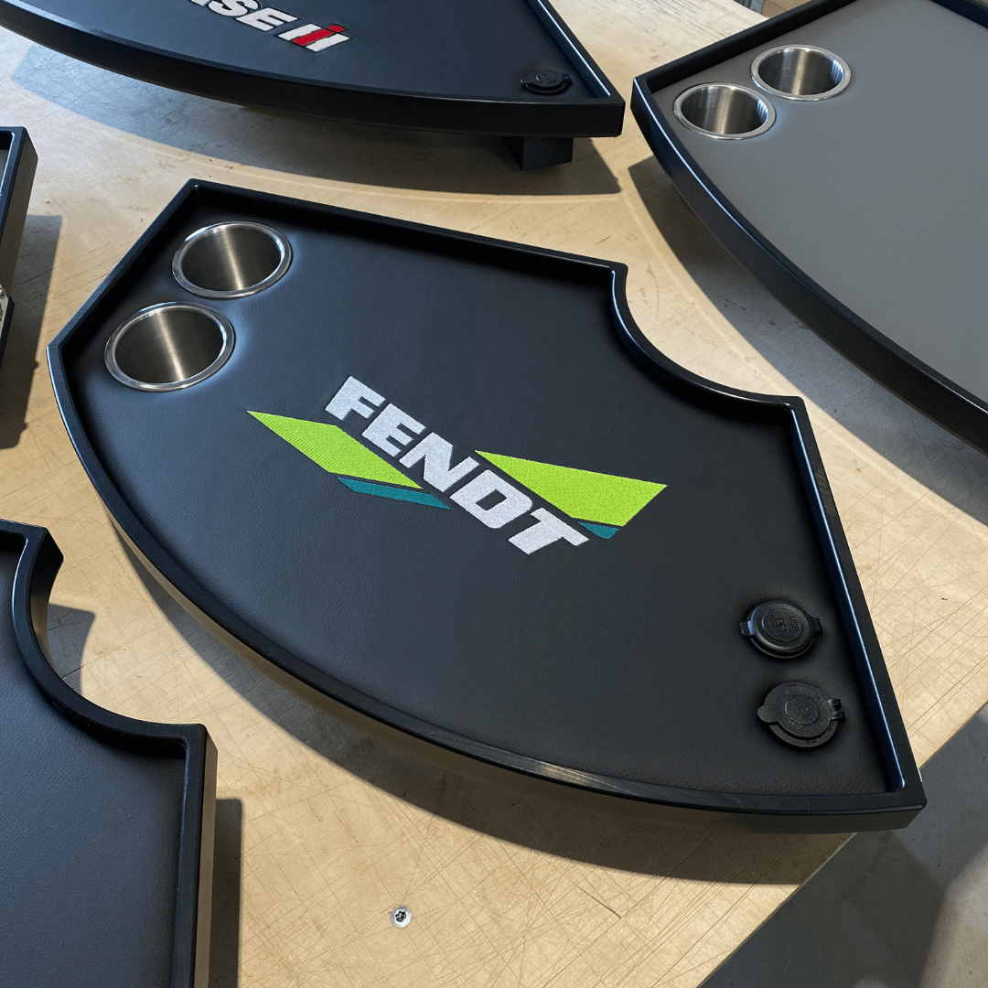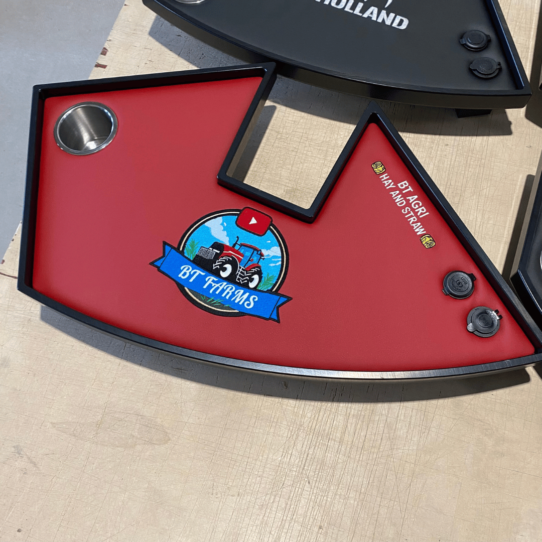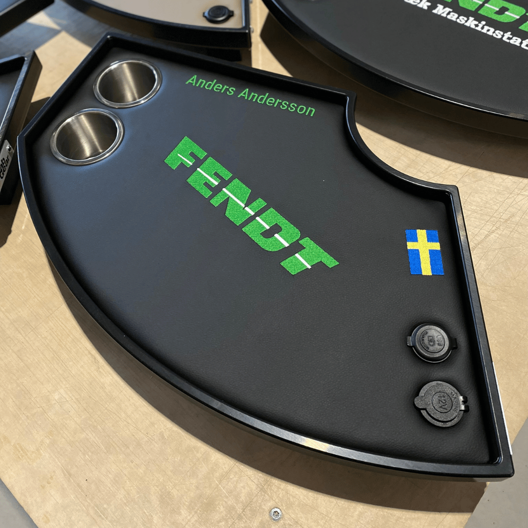 Se, hvordan andre operatører har tilpasset deres CabTable™. Fra John Deere og Fendt til Claas, Case IH, New Holland og Massey Ferguson — hver opsætning afspejler operatørens traktor og den måde, de arbejder på.