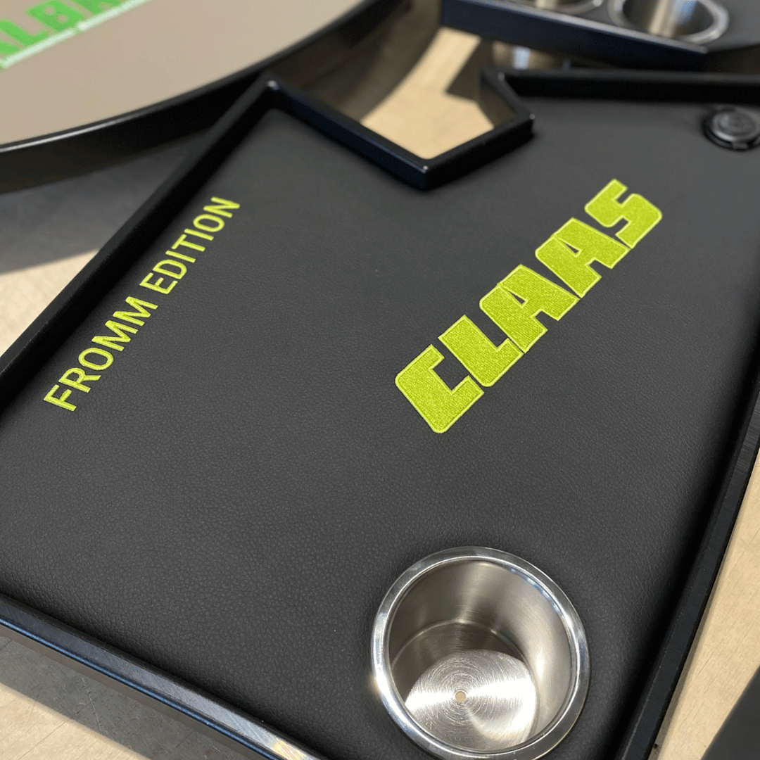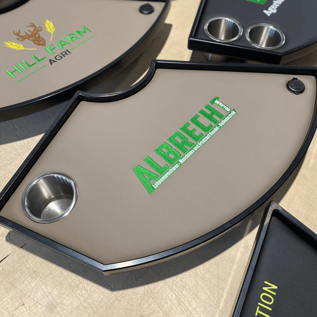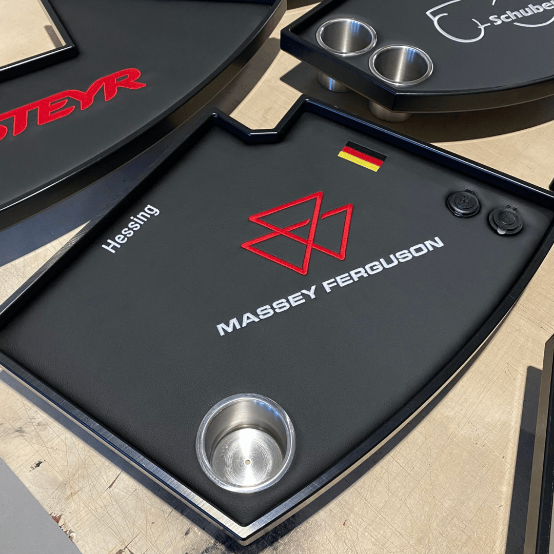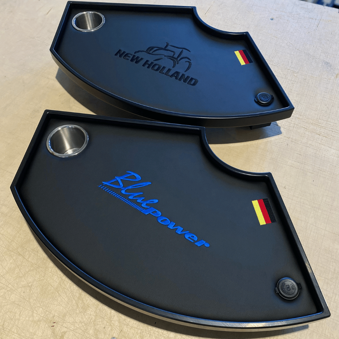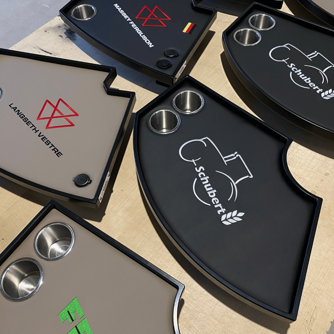 Se, hvordan andre operatører har tilpasset deres CabTable™. Fra John Deere og Fendt til Claas, Case IH, New Holland og Massey Ferguson — hver opsætning afspejler operatørens traktor og den måde, de arbejder på.