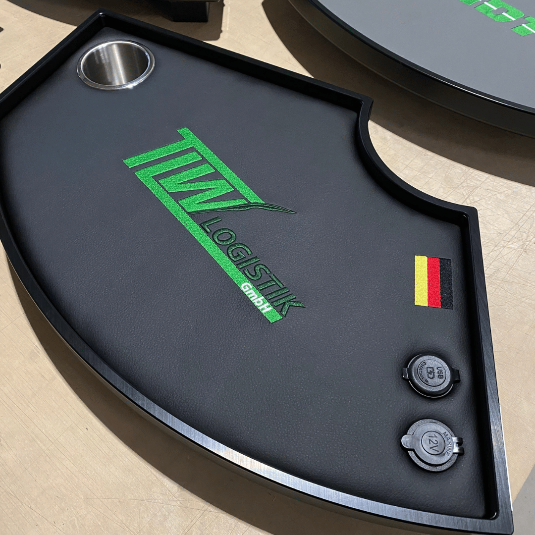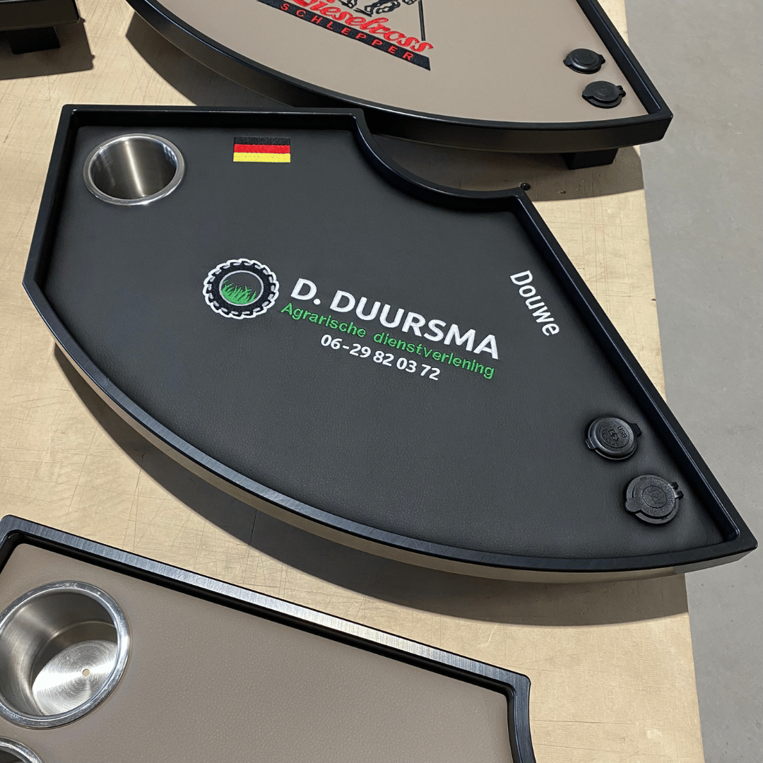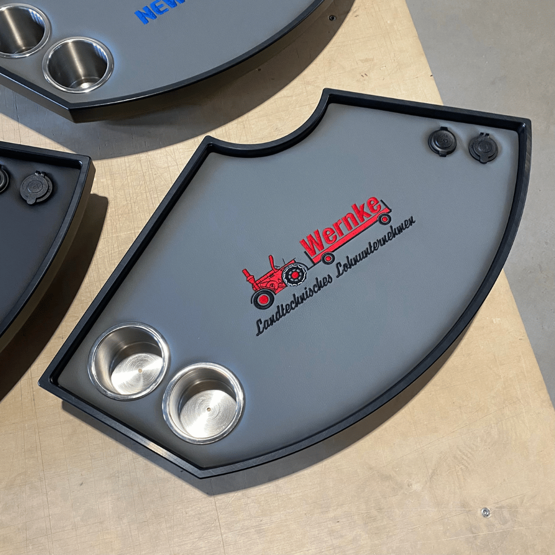 Tilpas din CabTable™ med logo, kopholdere, strømudtag og mere.