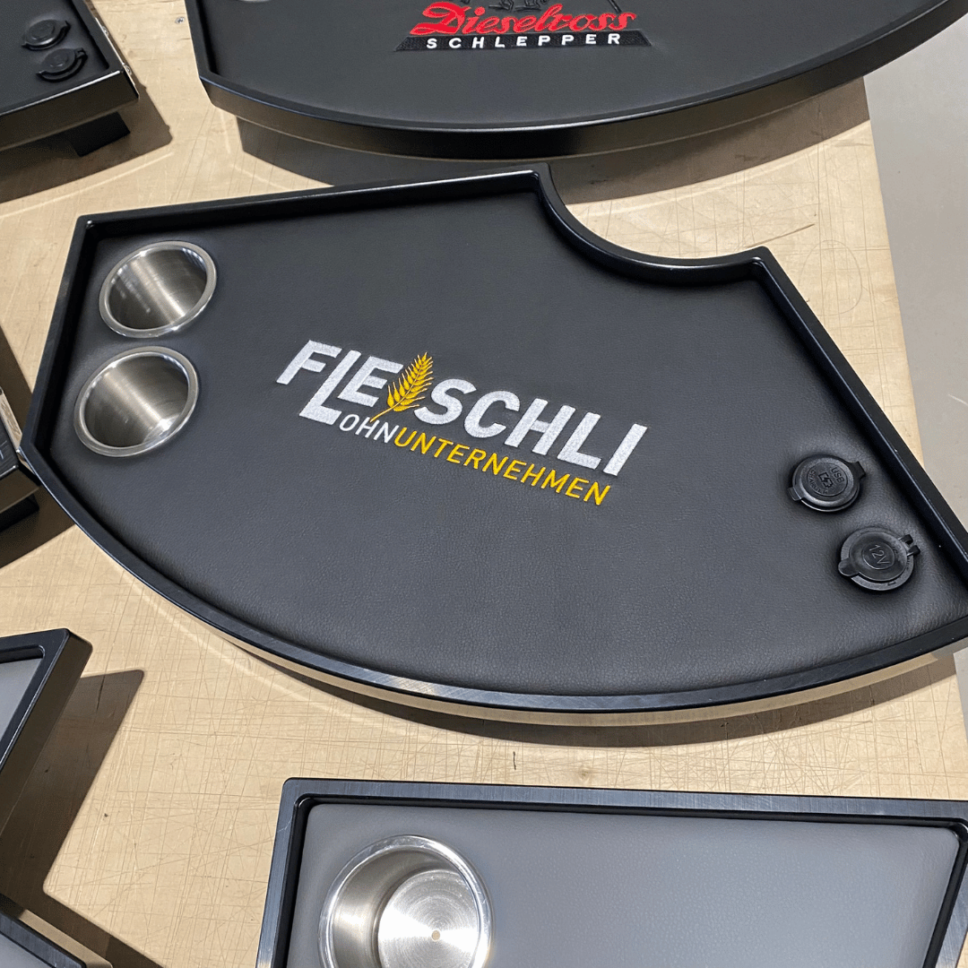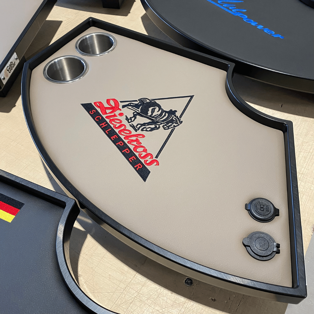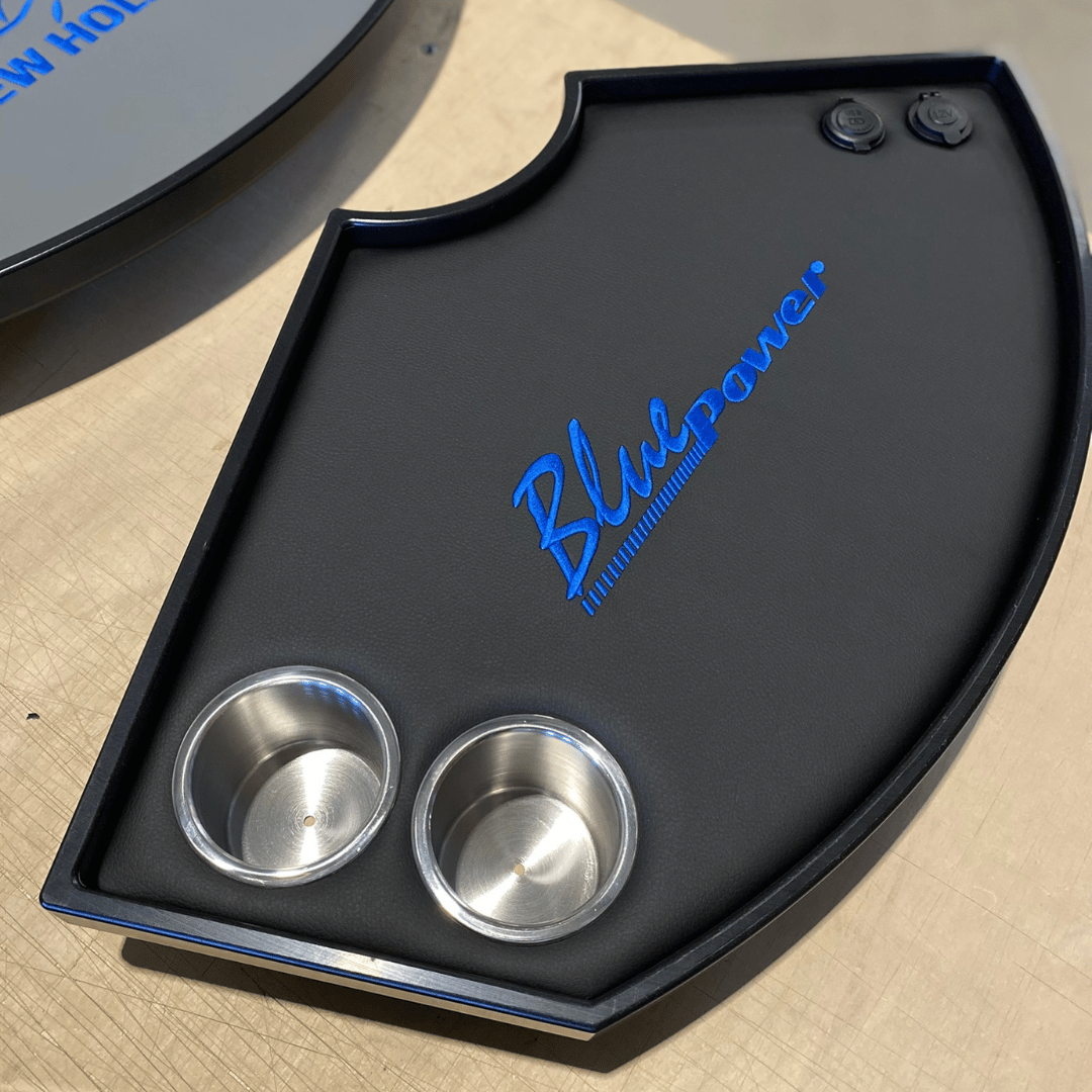 Tilpas din CabTable™ med logo, kopholdere, strømudtag og mere.