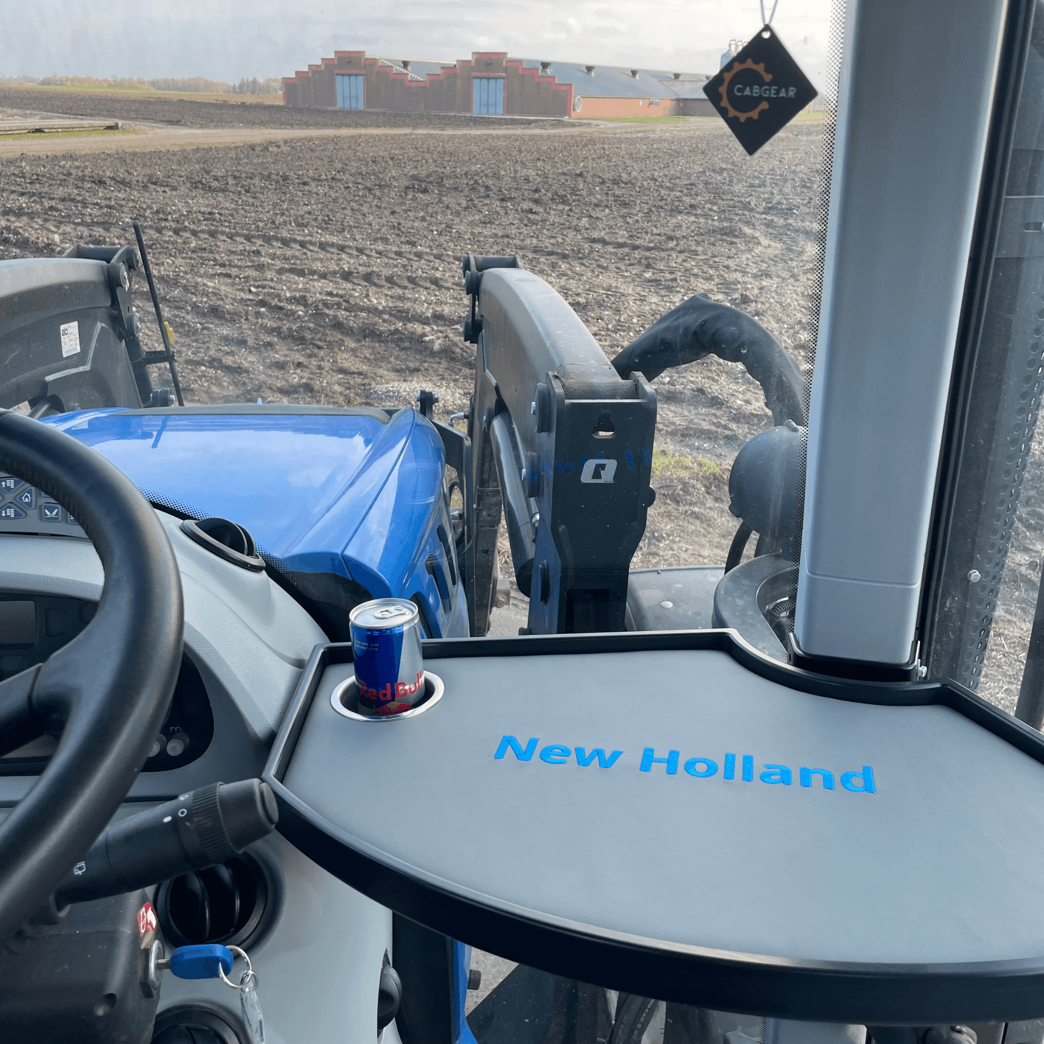 An exclusive, hand-built tractor cab table, designed to fit on the right A-pillar of your tractor, providing extra storage space and practical features to make your daily life as a farmer easier.